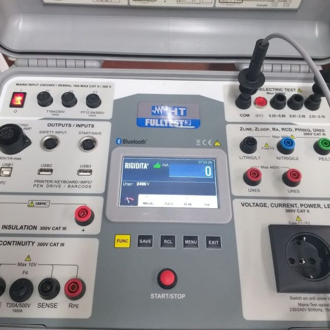 - verifica isolamento tra parti attive collegate fra di loro e telaio dell'apparecchiatura